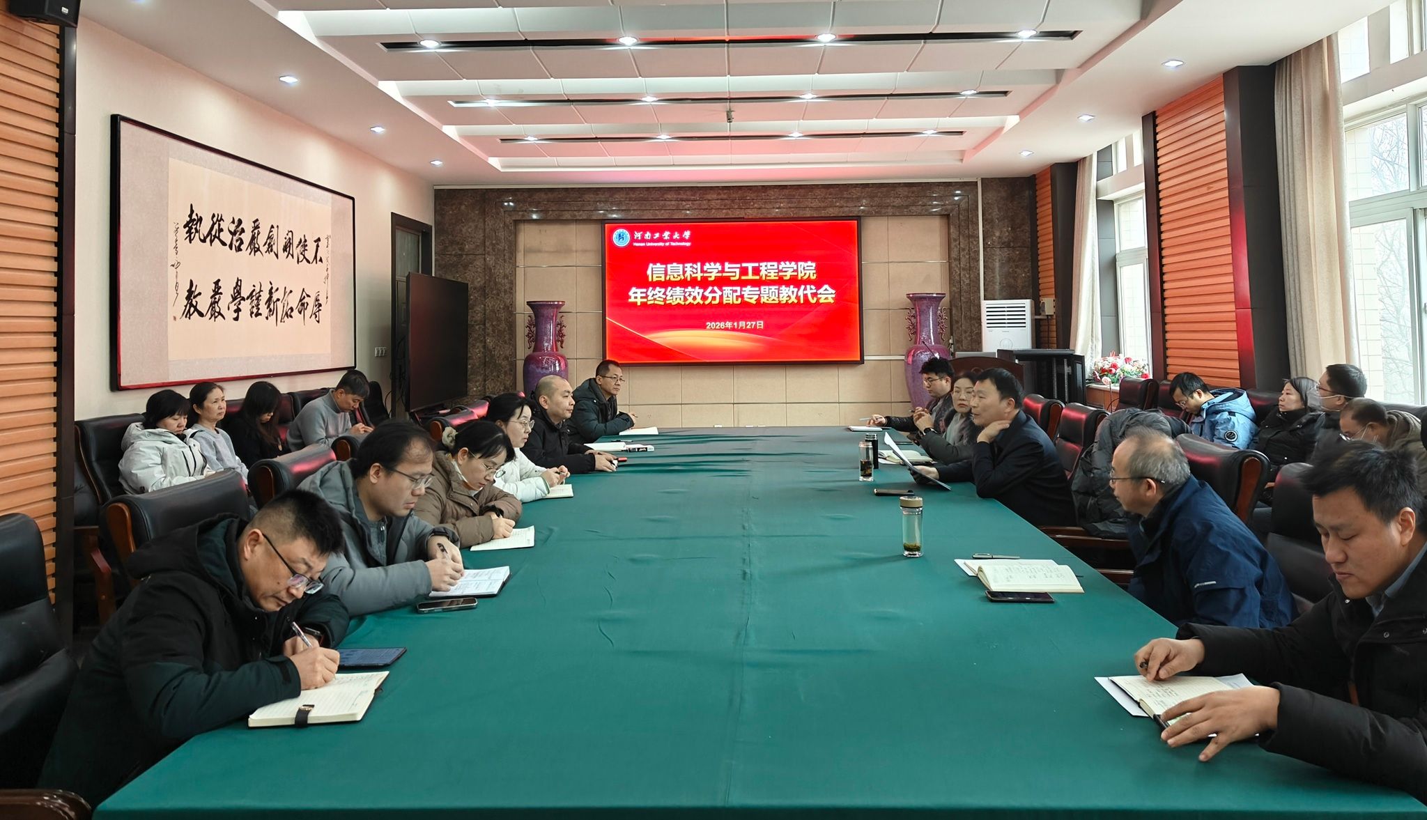 2026年1月27日,信息科学与工程学院在6225会议室召开专题教代会,讨论审议《信息科学与工程学院2025年度年终绩效分配方案》。学院领导班子成员和教职工代表参加了会议。学院党委副书记、工会主席魏雪芹主持会议。