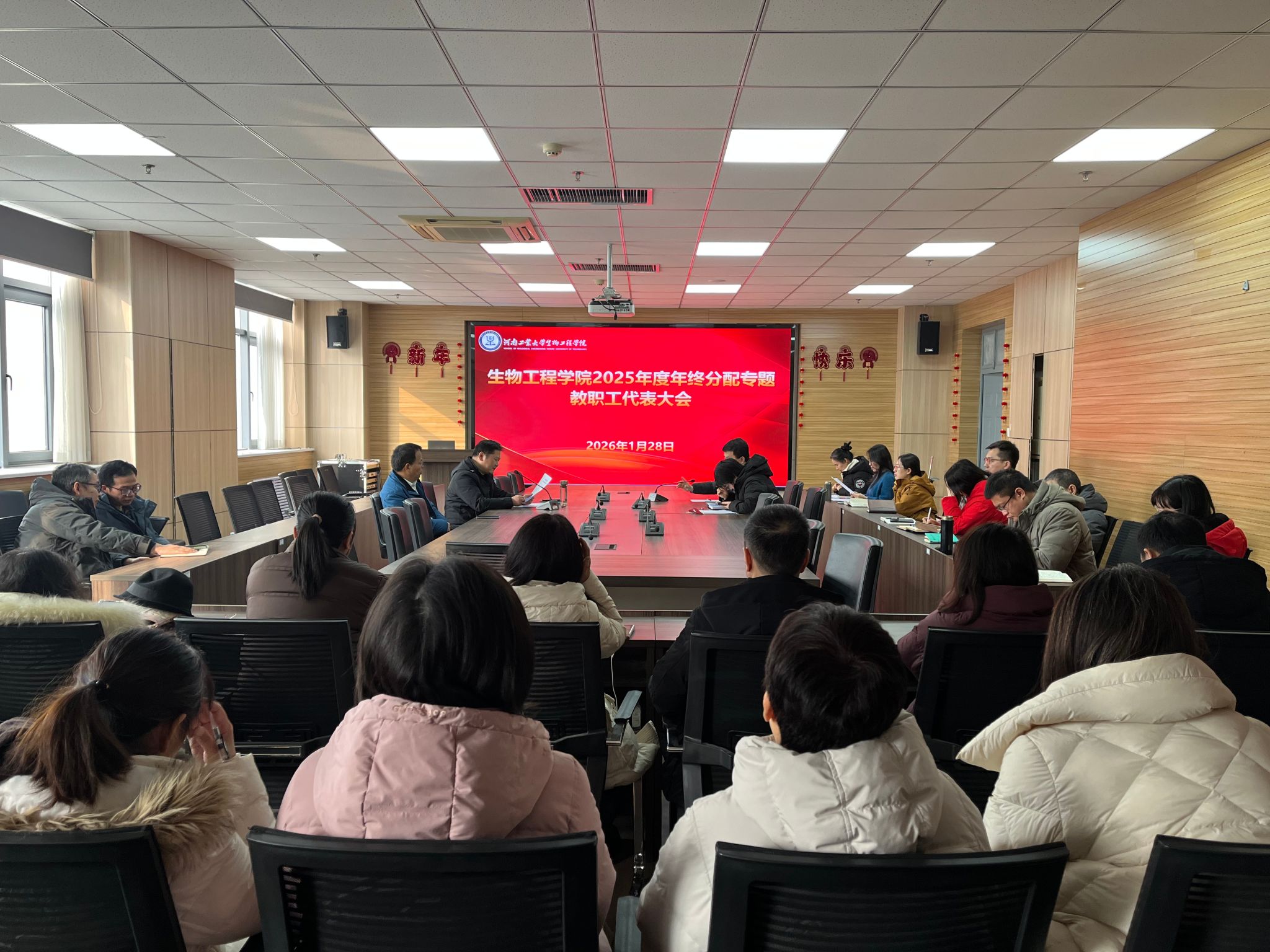 1月28日,生物工程学院专题教职工代表大会在惟德楼1313会议室举行。大会主席团和教职工代表参加了会议。会议由学院副院长梁赢主持。