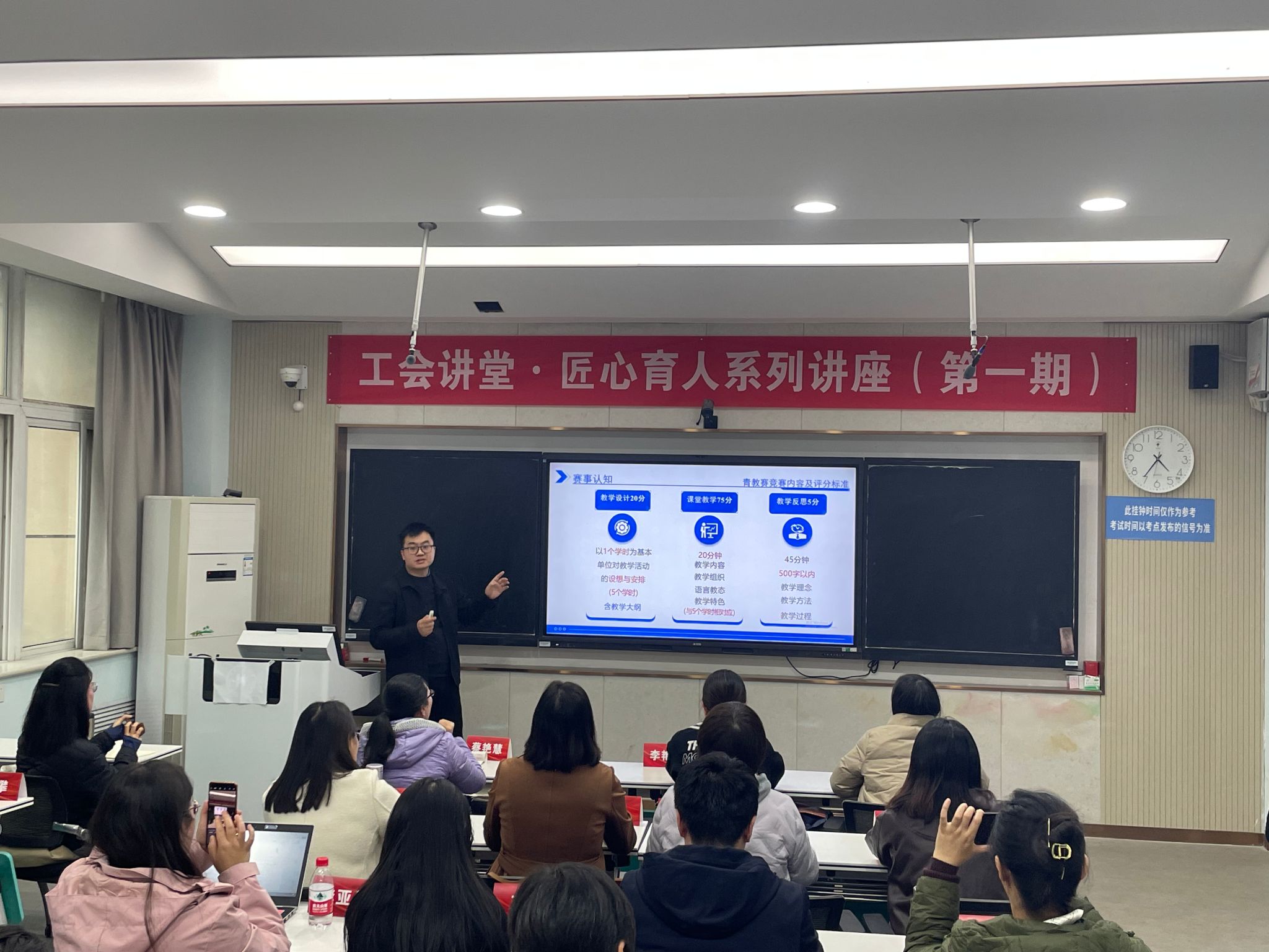 为深入贯彻落实新时代教育强国战略,助力教师教学技能与职业素养提升,10月22日下午,由校工会精心策划的“工会讲堂·匠心育人”系列讲座首场活动在3号楼3204智慧教室圆满落幕。本期讲座以“教学技能竞赛与教师专业成长”为主题,吸引了近60位教师前来参加。讲座由校工会副主席宋伟主持。