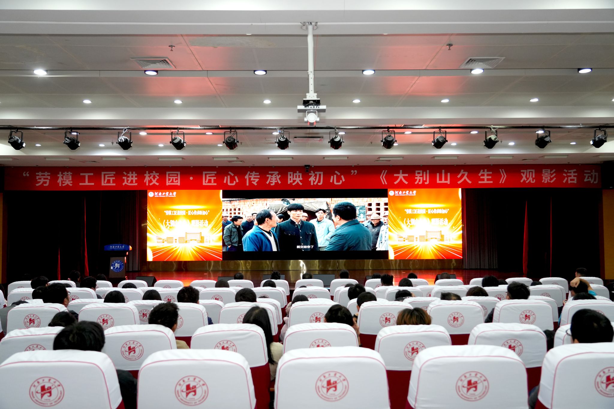 放映前,校工会副主席宋伟致辞指出,今年是中华全国总工会成立100周年、河南省总工会成立100周年,举办此次活动具有深远意义,强调弘扬劳模精神、劳动精神、工匠精神是新时代的重要命题。他寄语在场师生:要从影片中汲取信仰的力量、奋斗的激情与奉献的担当,牢记习近平总书记“劳动模范是国家的栋梁”的殷切嘱托,将劳模精神融入课堂教学,让工匠精神的薪火在校园永续传递,使“劳动创造幸福、实干成就伟业”成为全体师生共同的精神底色与奋进源泉。