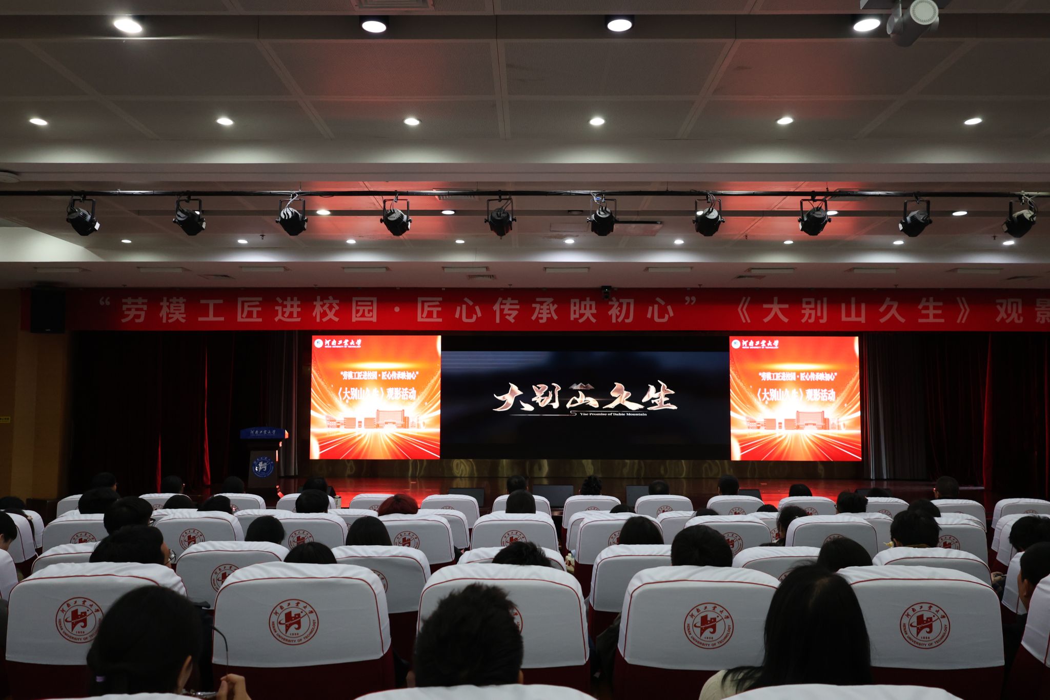 11月28日,党委宣传部、校工会、党委学生工作部和校团委在学术报告中心D303报告厅联合举办"劳模工匠进校园·匠心传承映初心"主题观影活动。校党委副书记、工会主席周相寅出席活动,劳模、创新工作室代表、行业名匠代表,第四届工会委员会委员,及师生代表等400余人共同观看影片《大别山久生》。