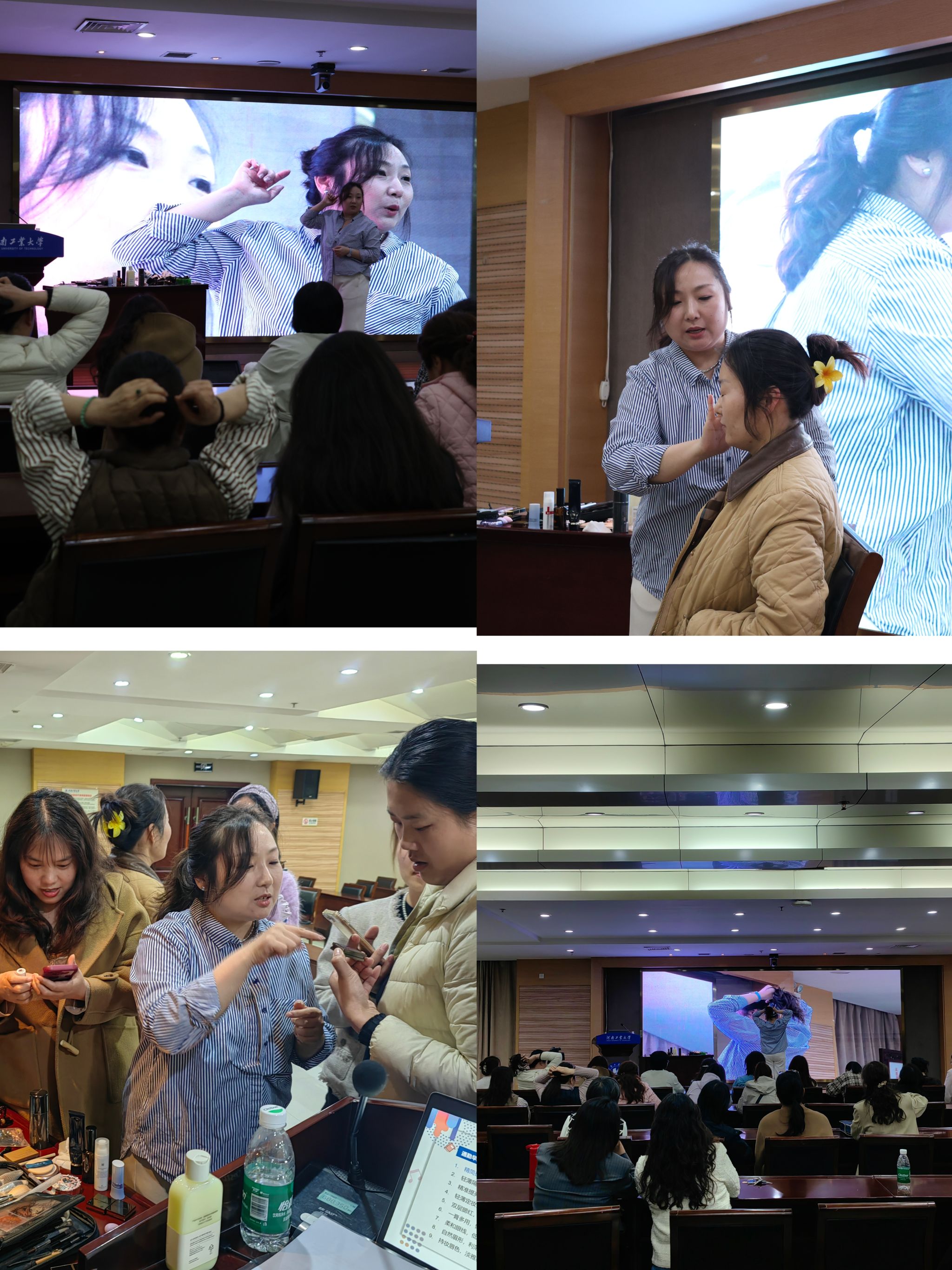 春风有信,花开有期。3月31日下午,莲花街校区行政楼D102会议室里笑语盈盈、气氛热烈,由校工会女工委精心策划组织的“魅力女性·品质生活”工会讲堂活动在这里温情举行。作为第116个“三八”国际劳动妇女节主题月系列活动的收官之作,本次活动吸引了来自各基层工会的120名女教职工热情参与,在人物形象设计专家的带领下,共同解锁职业形象的进阶密码,在草长莺飞的季节遇见更美的自己。