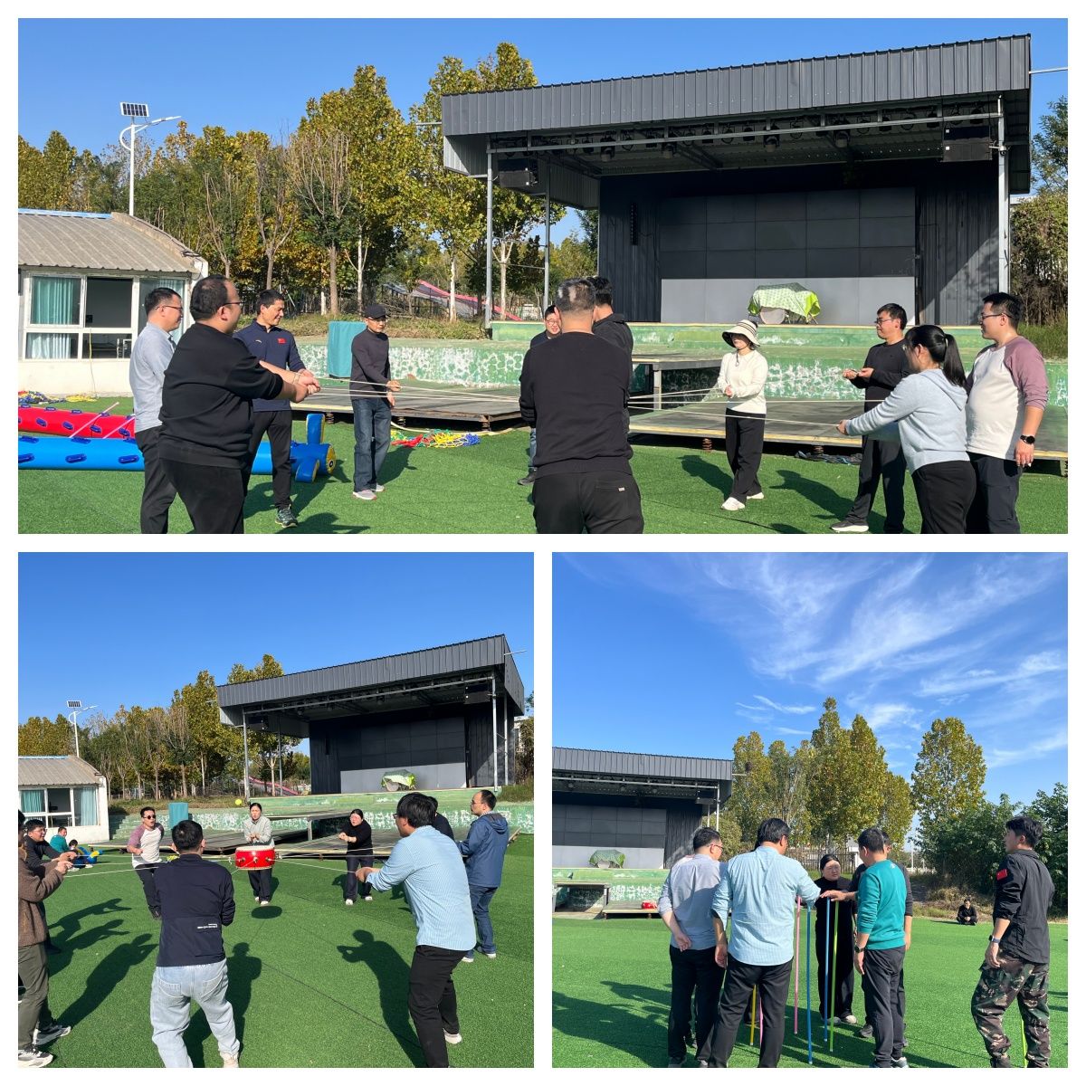 随后,教职工们前往洛阳拓展训练基地开展“团结协作 凝心聚力”主题户外素质拓展活动。在专业教练的指导下,各只队伍先后完成了“教练说”“对撞球”“不倒森林”“同心鼓”“神笔马良”等训练项目。活动中,队员们团结协作、默契配合,既有激烈的思想碰撞,也有温馨的互助瞬间。在"同心鼓"项目中,队员们默契配合,精准控制鼓面节奏;在"神笔马良"环节,大家齐心协力,共同书写育人篇章;"不倒森林"考验着团队的协调一致,"对撞球"则展现出教师们的活力与激情。活动现场气氛热烈,欢声笑语此起彼伏,在秋日暖阳下勾勒出一幅生动和谐的团队画卷。