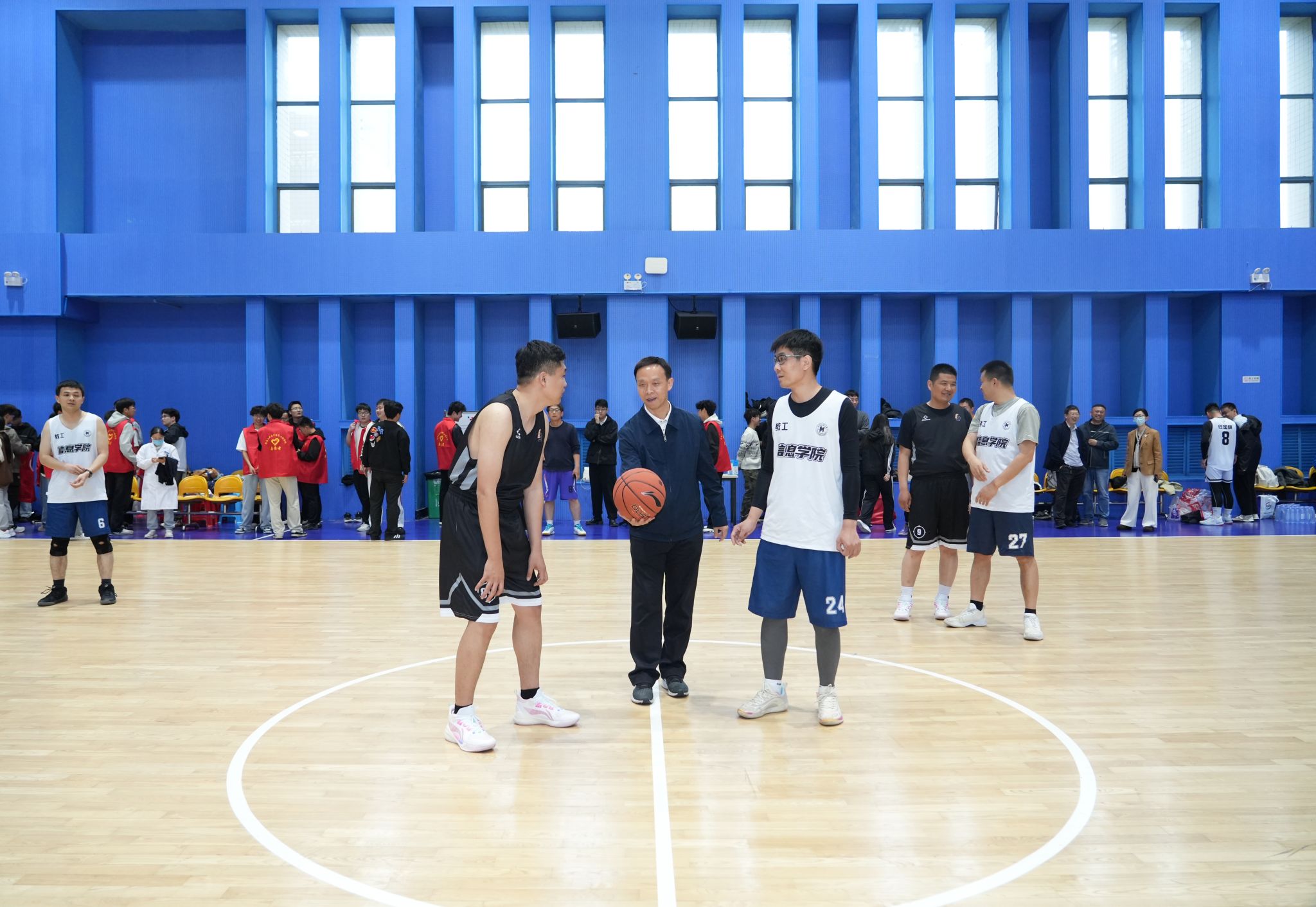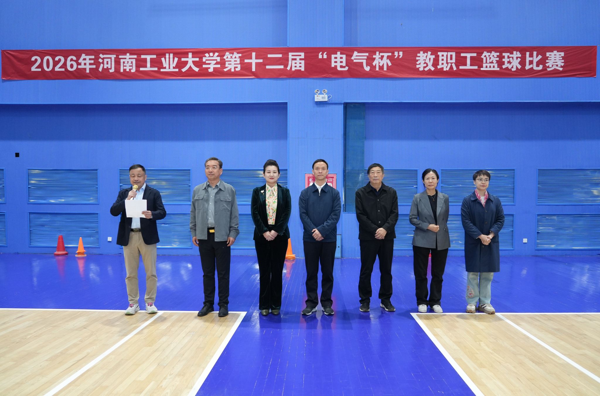 黄泽峰宣布比赛开幕并亲自开球,正式拉开了本次“电气杯”教职工篮球比赛的序幕。