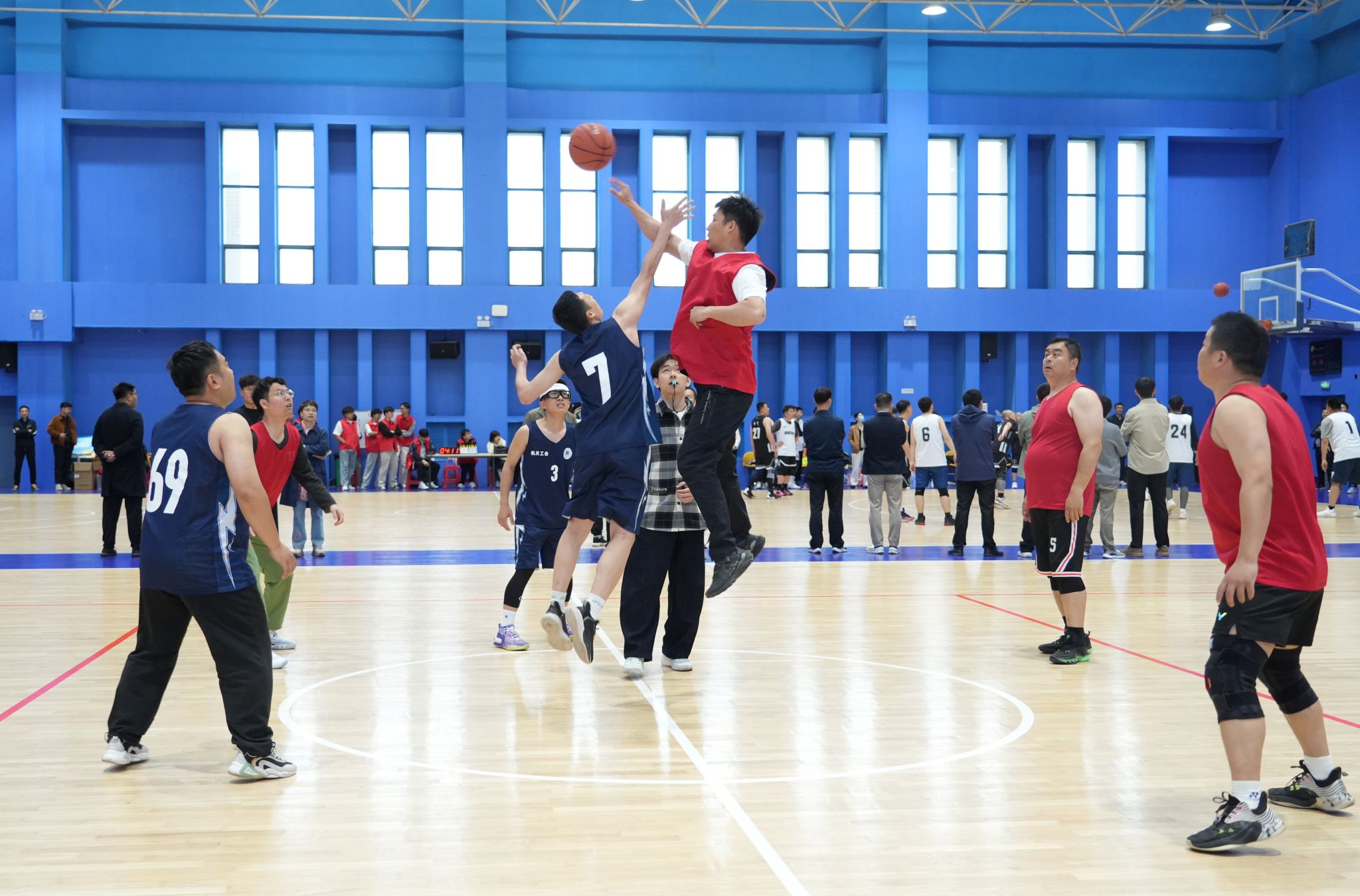 本次比赛分为小组循环赛和淘汰赛两个阶段,共有来自全校23个基层工会的19支队伍参赛,赛事将持续至4月30日,期间将有多场精彩对决轮番上演,为全校师生呈现一场场充满激情与活力的篮球盛宴,进一步丰富校园文化生活,为学校70周年校庆增添浓厚氛围。(来源:校工会 教职工篮球协会 文/李化祥 李冉阳 摄影/张玥 审校/李科 李国平 审核/张莉 张浩军)