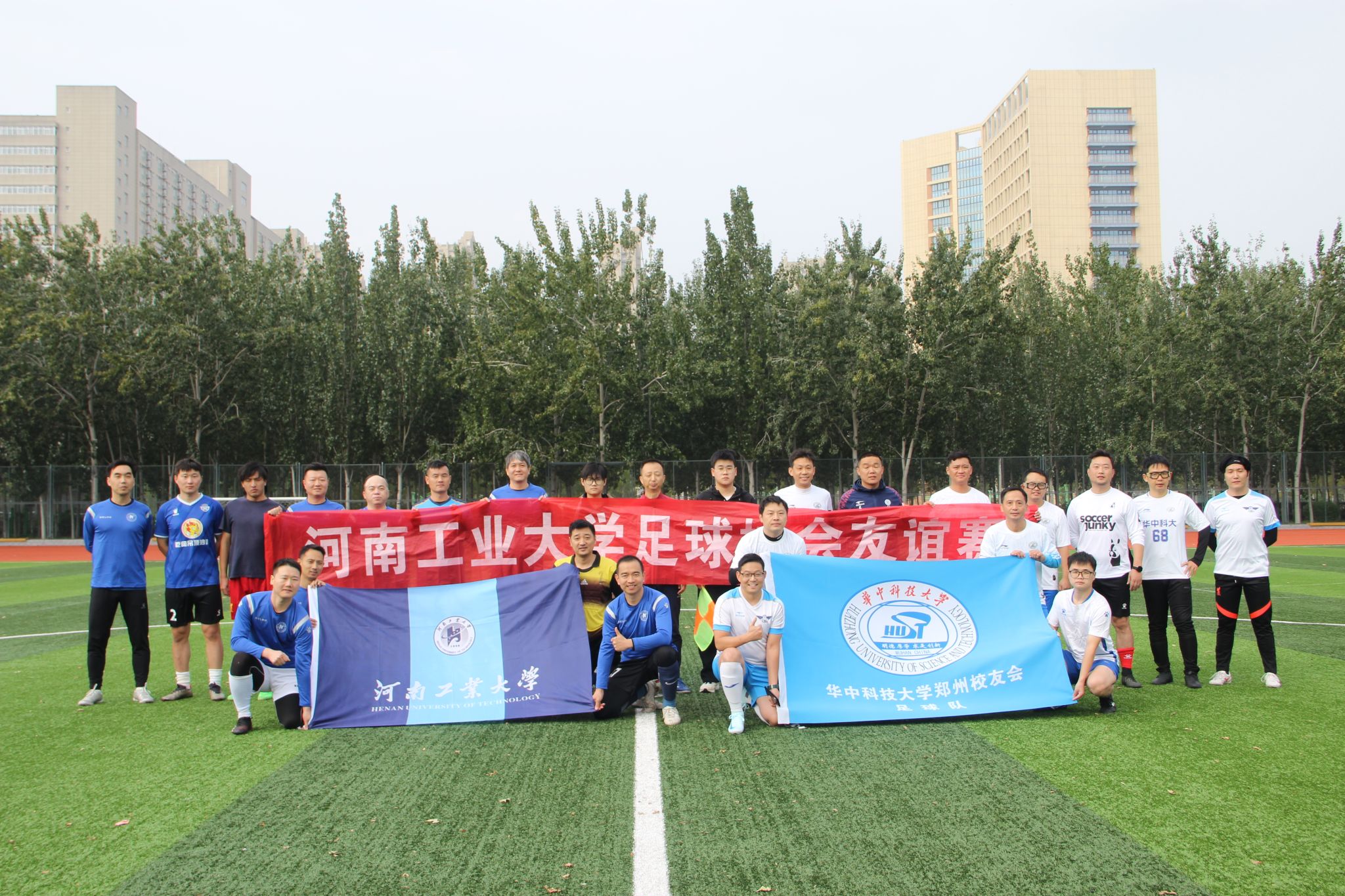 2025年10月19日上午,河南工业大学足球场阳光明媚,绿茵场上迎来了一场充满激情与温情的足球友谊赛。河南工业大学教工足球队与华中科技大学郑州校友会足球队在此展开激烈角逐,双方球员以球会友,以赛传情,共同谱写了一曲校园与校友情谊的赞歌。