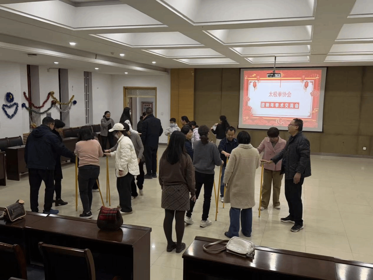 为传承中华优秀传统文化,丰富教职工精神文化生活,2025年11月27日晚,我校教职工太极拳协会在25号楼119多功能厅举办了以“以拳会友,喜迎新春”主题迎新年拳术交流活动。活动现场气氛热烈,52名协会会员及太极拳爱好者齐聚一堂,共赴这场传统与现代交融的太极盛宴。